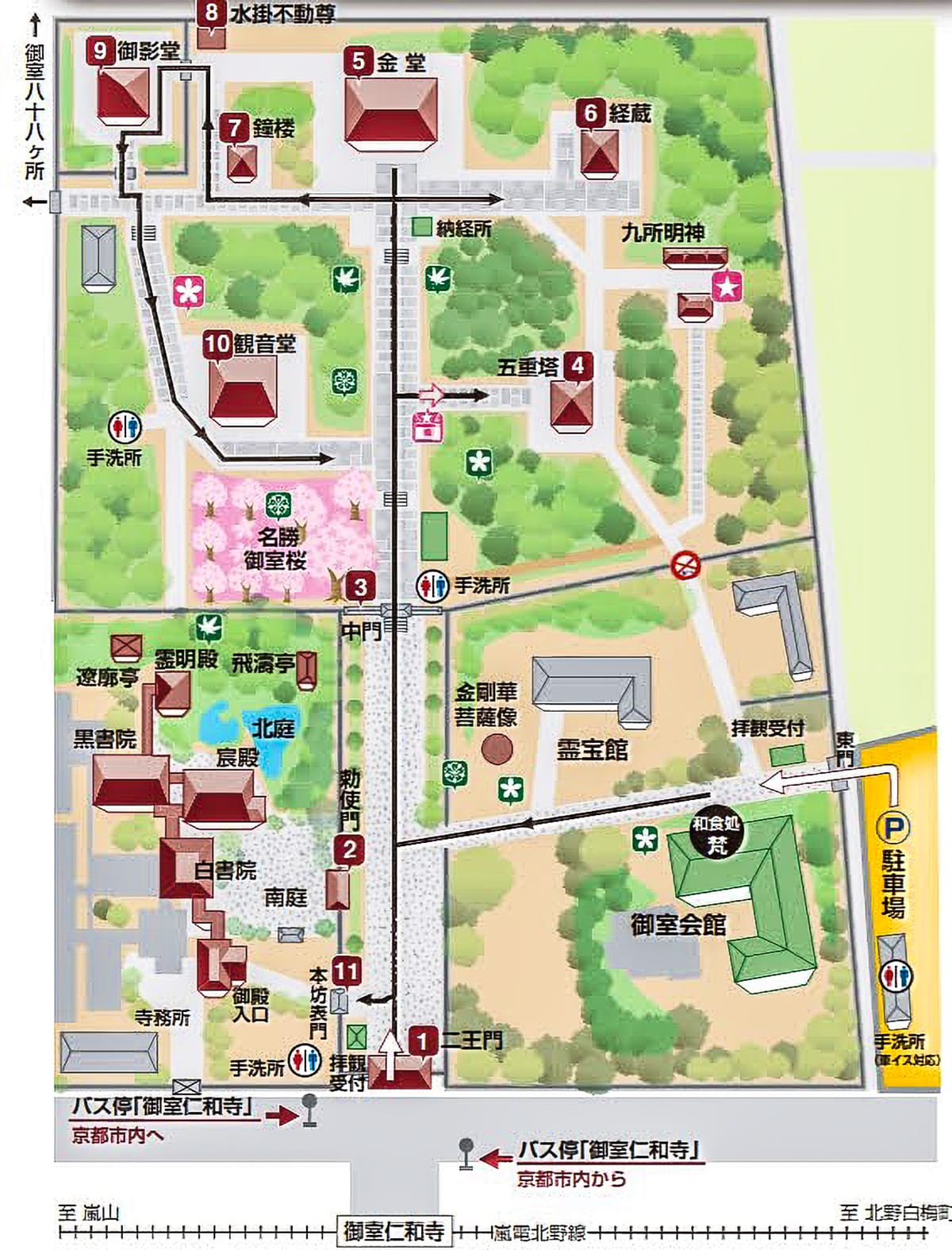 京都・仁和寺の拝観料金(割引料金)・拝観所要時間・営業時間(拝観可能時間)・駐車場の場所・拝観ルートなど