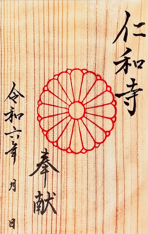右上に「仁和寺」の文字、左下には「奉献」、参拝日