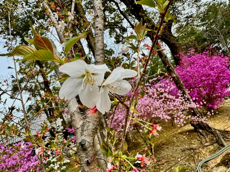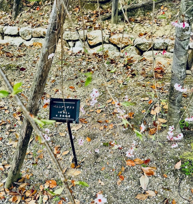 ↑どうやら御室桜は単株で境内の方々に配植されているらしく、上掲写真の低樹高の桜は御室桜かと思われる。