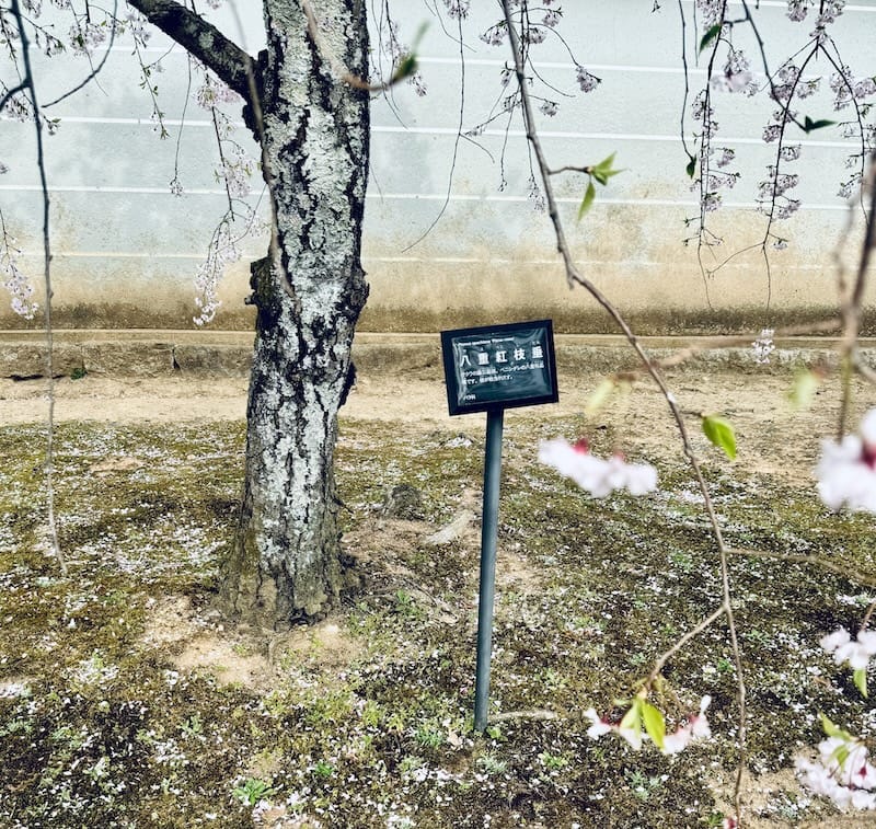 この中でも特に八重紅枝垂桜は参道沿いで観ることができます。(特に鐘楼付近)