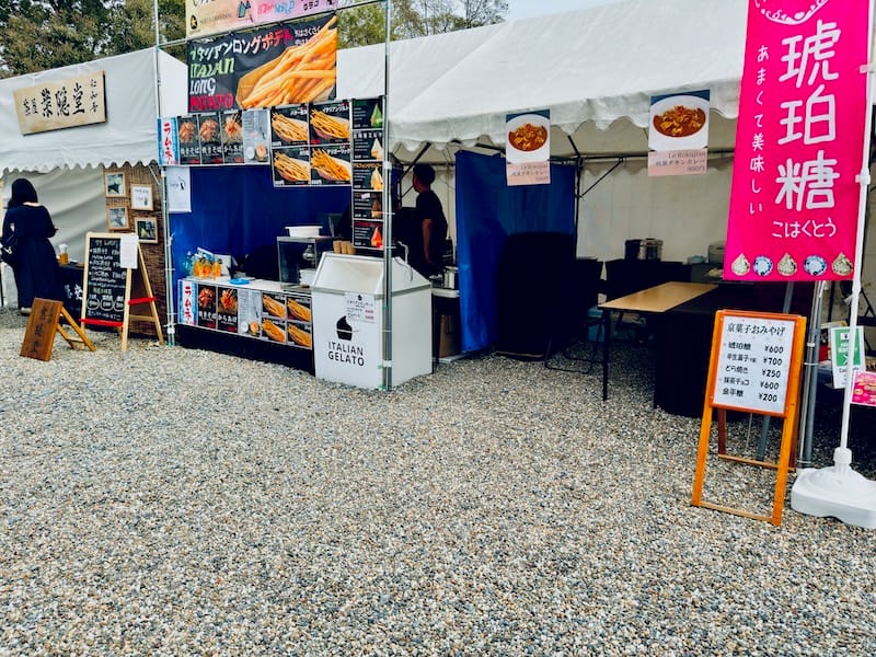 毎年の御室花まつりの期間中、霊宝館前の広場にグルメや京土産をヤバぃよ素敵に販売する屋台村がオープンする。